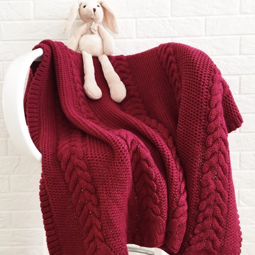 Объемный плед с рельефным мотивом Косы. Связан из гипоаллергенной пряжи, безопасен даже для самой чувствительной кожи малышей. Мягкий, нежный и совсем не колется! Шерсть мериноса приятно согревает и отводит лишнее тепло, создавая комфортный микроклимат для ребенка!